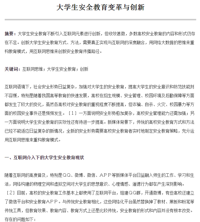 大学生安全教育变革与创新