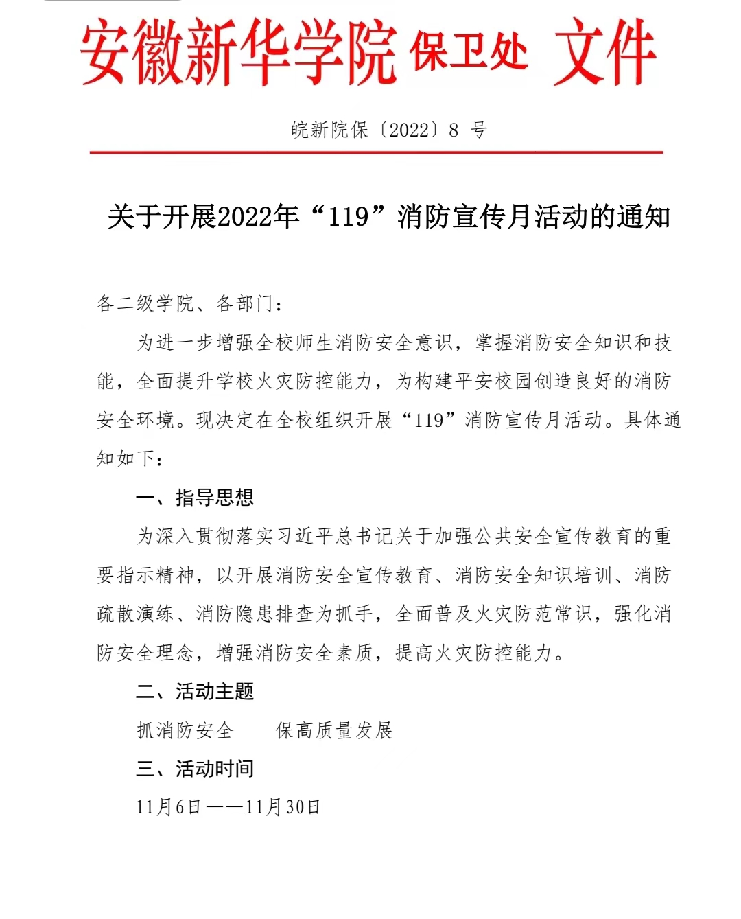 关于开展2022年“119”消防宣传月活动的通知