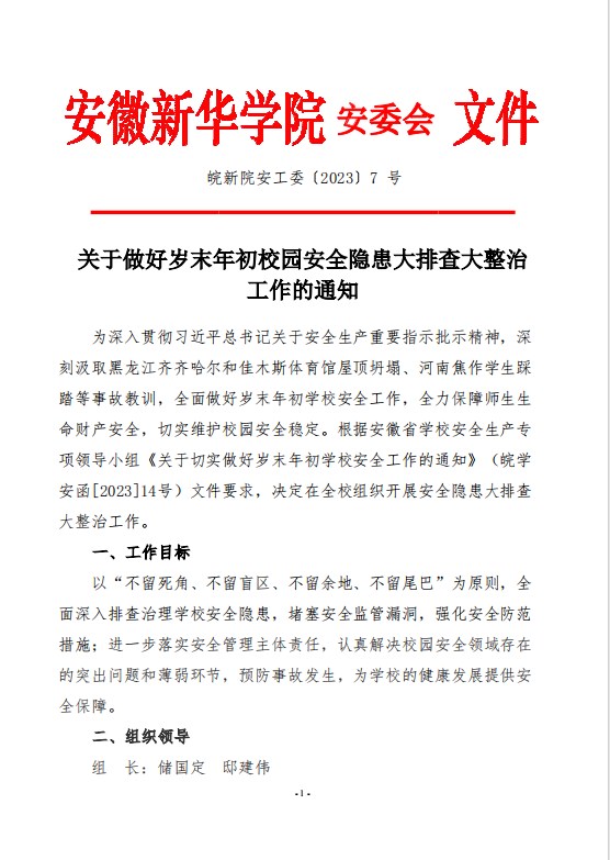 关于做好岁末年初校园安全隐患大排查大整治工作的通知