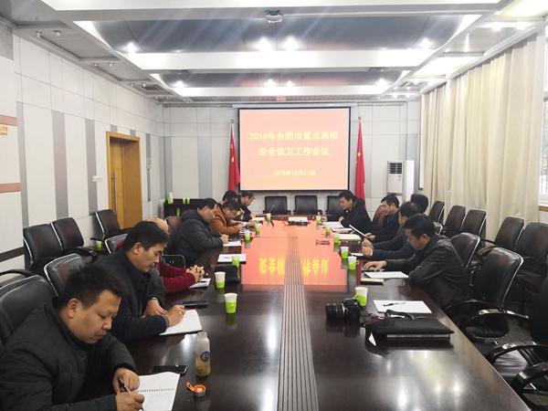 本网讯(通讯员:黄德垚)2018年12月27日,我校参加合肥市重点高校安全保卫工作会议。会议在合肥工业大学召开,参加会议的人员有合肥市公安局国保大队负责人、在肥高校保卫处负责人。