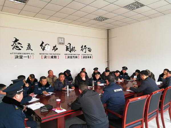 会上,汤军队长点评了近期工作,带领大家集体学习寒假值班方案,明确值班纪律和注意事项。