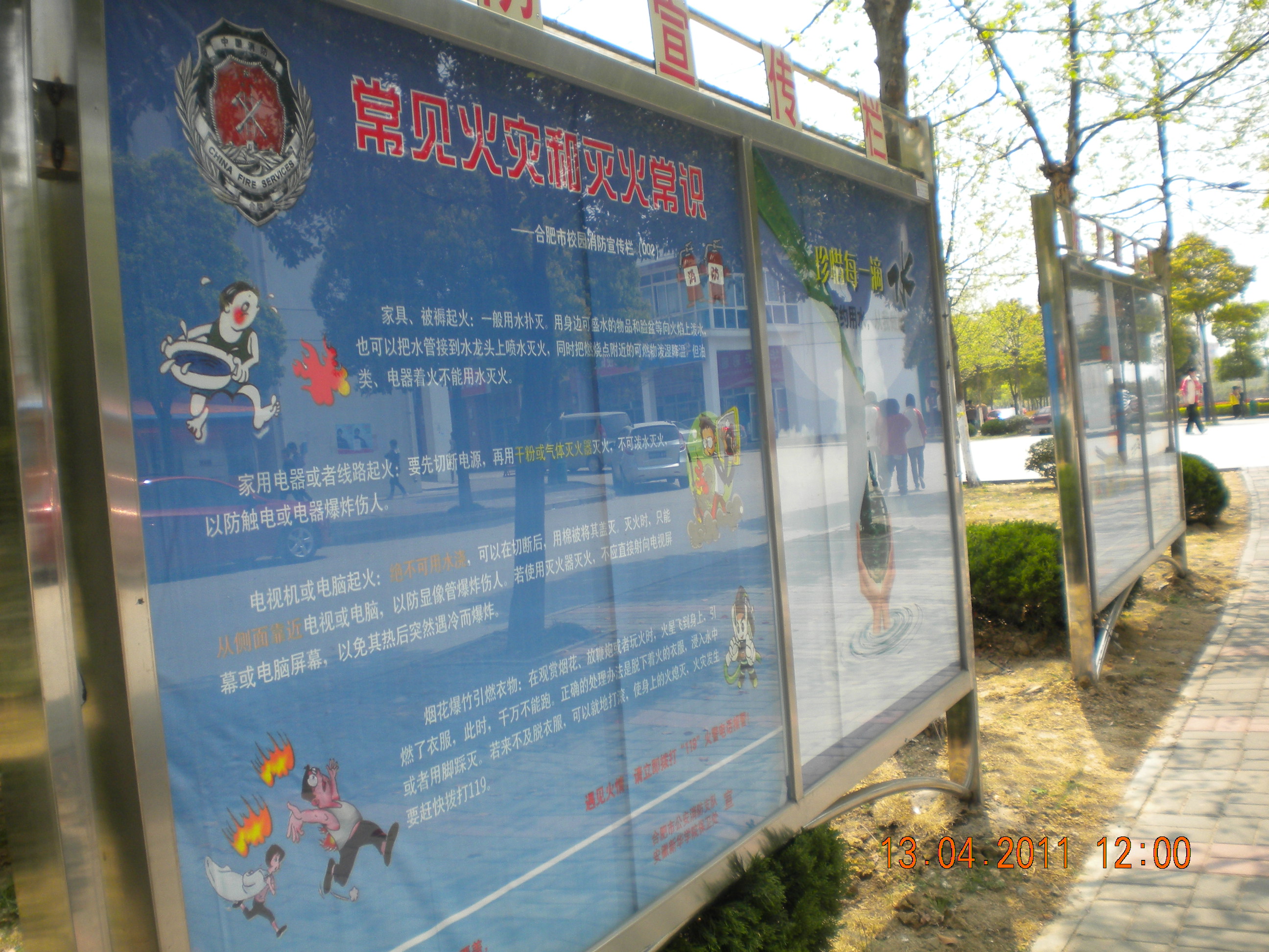 此次宣传活动主要在我院公寓楼、教学楼、文化广场及主要干道等30处人员密集场所设立消防宣传栏。消防宣传栏包括逃生自救能力技能知识、防火和灭火知识、消防栓与灭火器使用等板块。宣传栏款式设计新颖、内容丰富,版面既生动有趣,又图文并茂,使广大师生直观、方便、详实地了解消防安全知识,得到了广大师生的青睐。