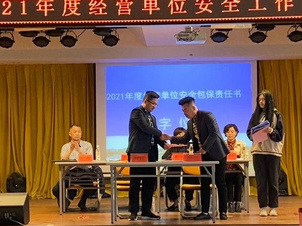 贺行佳与经营单位代表签订了《安徽新华学院2021年度经营安全管理包保责任书》。