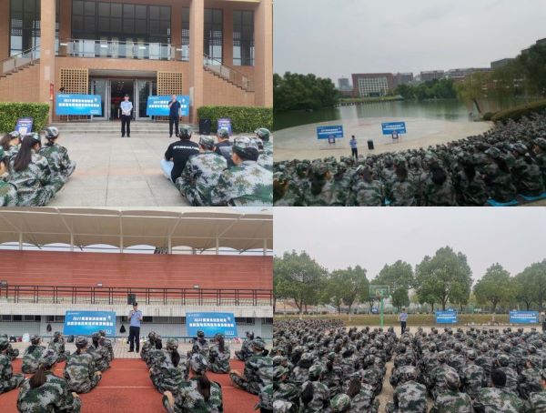 本网讯(通讯员:张炎)为进一步提升2022级新生的法治意识和识骗防骗能力,8月30日上午、9月1日、2日下午,学校保卫处、学生处联合高新派出所组织开展新生安全教育第一课。结合当前疫情防控要求,采用安全教育流动宣传点的方式,深入各军训场地,利用训练休息间隙开展法治教育暨防电诈宣教活动。活动由保卫处仇陶主持,高新派出所何驰所长宣讲。
