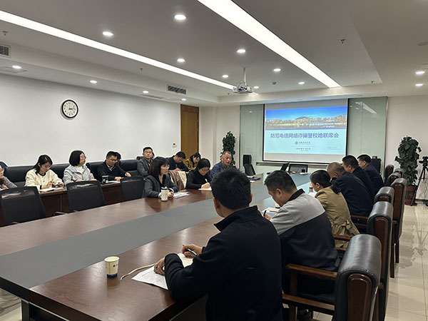 首先学校保卫处汇报了秋季学期开学以来我校防范电诈工作开展情况。文化与传媒学院、艺术学院、城市建设学院结合专业特点,开展“一院一特色”反诈宣教活动,将防电信诈骗宣传深入宿舍、深入班级、深入课堂,提高防范意识。高新派出所对电信诈骗案件进行深入分析,并就电诈案件报警、电话回访、预警拦截、电诈宣传等有关问题和与会人员进行了互动交流。