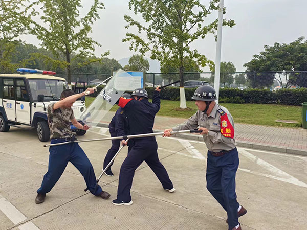 队员们针对不法分子的拍照、拉横幅、强闯校门、持械冲闯校园等情况进行了反复的演练。本次演练锻炼了大家的实战心理了应敌技巧,做到平时训练用时不慌。