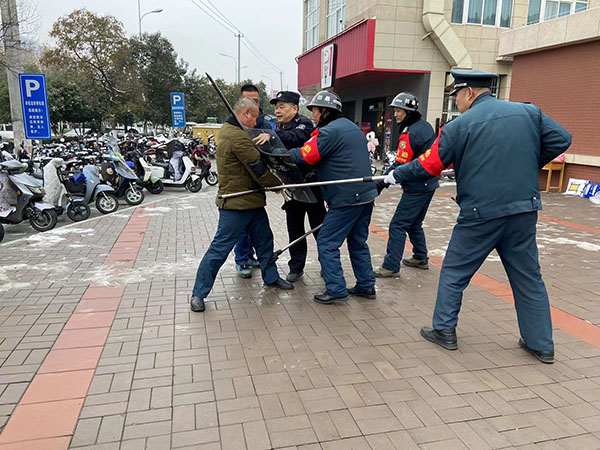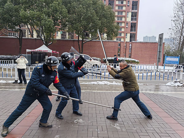 本网讯(通讯员:张大勇)12月19日上午,我校联合高新派出所在我校西门进行了反恐演习。