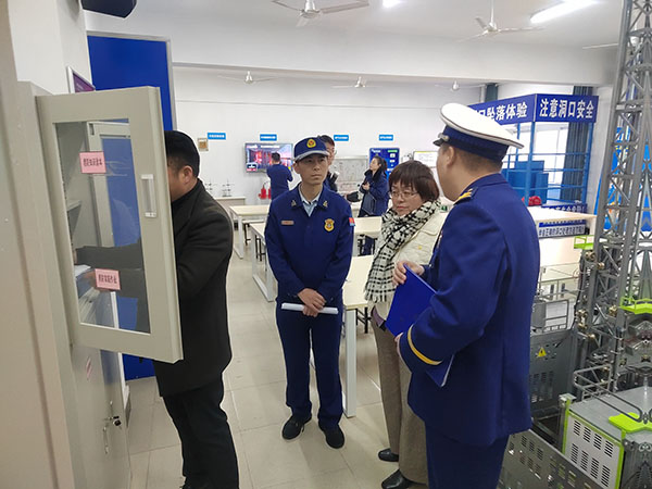 检查组检查了我校的消控室,校园监控室,微型消防站,消防安全教育主题教室。并对微型消防站的应急反应进行了突击检查。我校消防人员接警立即反应,根据消防流程对着火地点进行了有效扑救。检查组一行对我校的消防安全教育主题教室重点检查,详细询问了教室的使用情况,观看了教室内各种消防设施的演示。王应平处长对我校的消防安全教育主题教室给予了高度的评价,表示有这样一个主题实验室需要好好利用,争取在培养人才和消防安全演练等方面多多发挥作用。