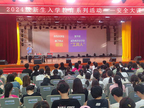 本网讯(通讯员:张大勇)根据新生入学教育计划的安排,为进一步加强新生法纪教育暨反诈宣教,增强同学们知法、用法、守法意识,提升安全防范能力,9月20日下午邀请合肥市刑警支队五大队副大队长杨础来为我校2024级新生开展安全教育。