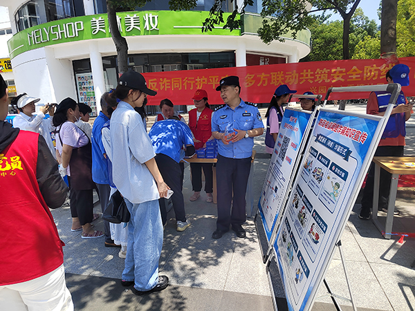 本网讯(通讯员:张大勇)为有效提升广大师生在“618”购物高峰期的识诈、防诈、反诈能力,筑牢校园安全防线。6月6日中午,我校联合高新派出所、兴园中心、香樟社居委在翰林广场共同举办了一场“618”购物季防范电信网络诈骗专题宣传活动。活动共吸引800余名师生参与,现场气氛热烈,成效显著。