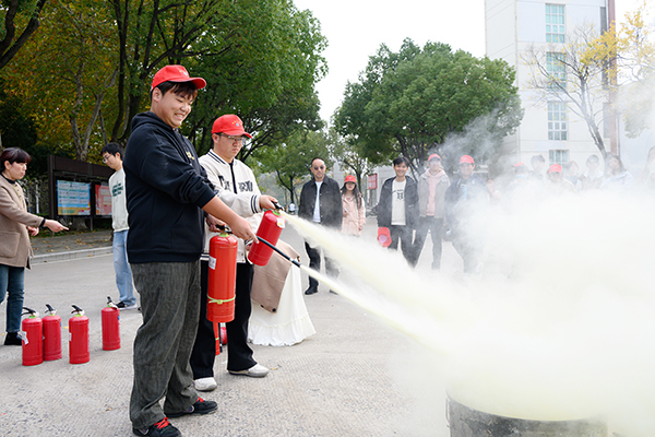 活动首先开展了消防应急疏散演练。14:50,学校餐厅烟雾火情警报紧急拉响,疏散引导员迅速组织学生向楼外紧急疏散。3分钟内200余名学生和食堂工作人员紧张有序地全部安全疏散完毕。