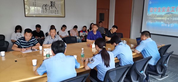 本网讯 (通讯员:仇陶)按照学校相关工作安排,结合我校留学生和外教管理的现状,8月27日上午,留学生安全工作座谈会在国教院二楼会议室召开,公安高新分局治安大队、国保大队、高新派出所的分管领导和干警,国教院院长徐鸣、留学生管理人员和保卫处有关人员参加会议。会议由保卫处副处长仇陶主持。