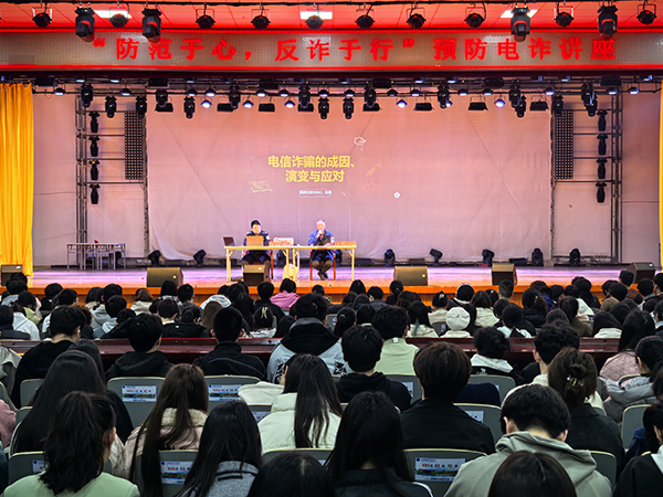 本网讯(通讯员:张大勇 摄影:侯帅)为提升师生反诈防骗意识,3月13日下午,我校特邀高新区刑警大队副大队长陈偲、高新派出所民警李萱来校开展"防范于心,反诈于行"辅导培训。副校长李金星出席活动,全体辅导员和部分学生骨干约600余人在大礼堂参加培训,安全管理处副处长仇陶主持活动。