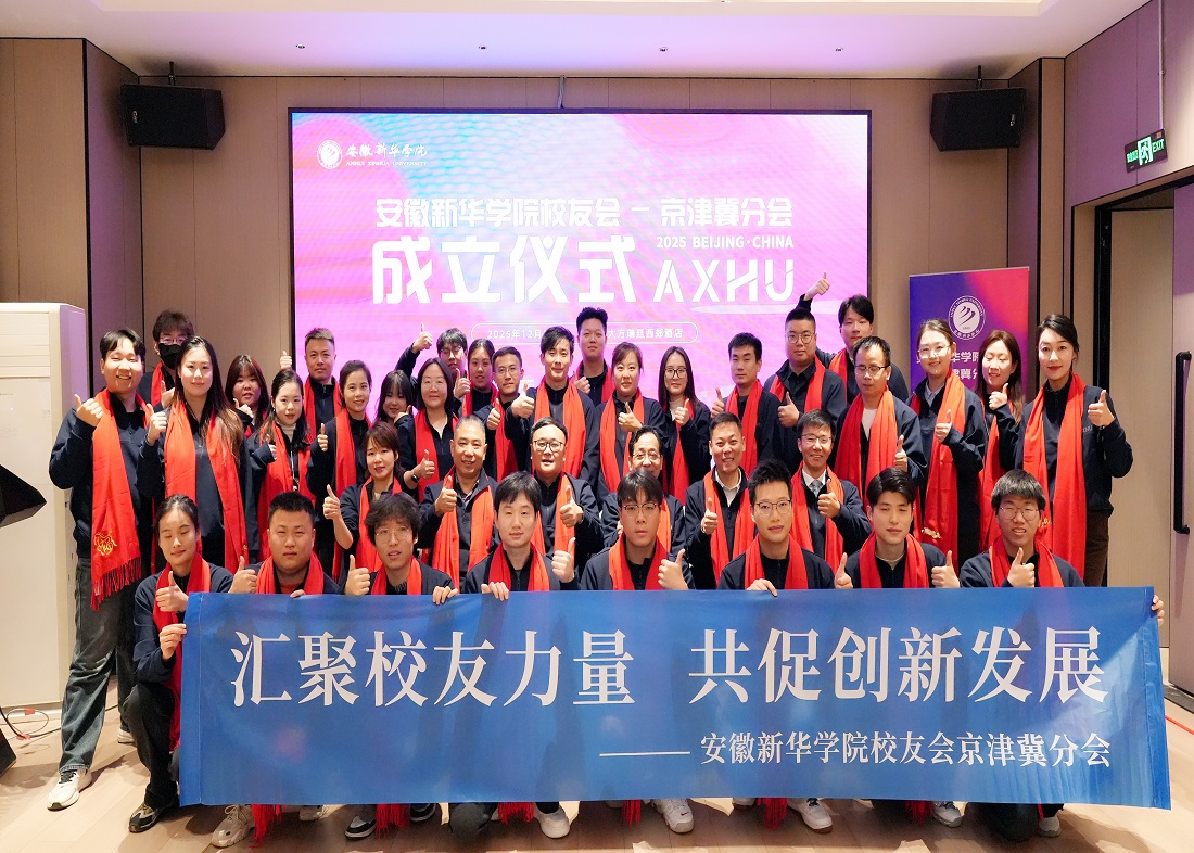 本网讯(通讯员:李燕飞)12月27日,安徽新华学院校友会京津冀分会成立仪式在北京隆重举行。新华集团副总裁、安徽新华学院董事长王孝武,省督导专员、校党委书记邸建伟等校领导莅临大会,二级学院及相关职能部门教师代表,以及在京津冀地区工作生活的各届校友代表欢聚一堂。大会由校友工作办公室副主任(主持工作)孙珊珊主持。