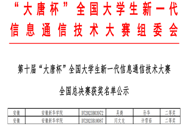 - 2023-08-09我校电子工程学院/智能制造学院学子在第十届“大唐杯”全国大学生新一代信息通信技术大赛中荣获佳绩