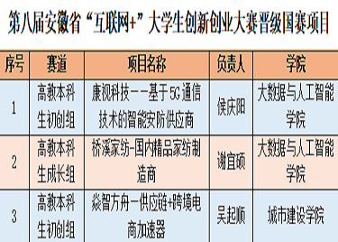 本网讯(通讯员:罗月)近日,在第八届安徽省“互联网+”大学生创新创业大赛金奖排位赛中,我校团队表现优异,3个项目成功晋级全国总决赛。