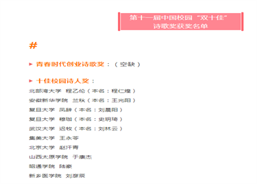 - 2021-06-30我校学子在第十一届中国校园“双十佳”诗歌奖斩获佳绩