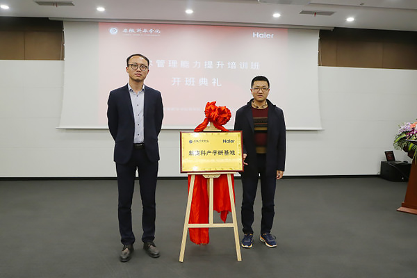 - 2021-04-01我校举办海尔管理能力提升培训班开班典礼暨“新商科产学研基地”揭牌仪式