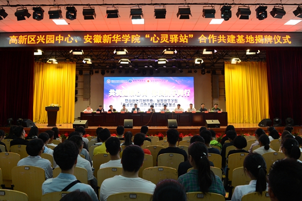 - 2018-09-27安徽新华学院、高新区兴园中心“心灵驿站”合作共建基地揭牌仪式在我校顺利举行