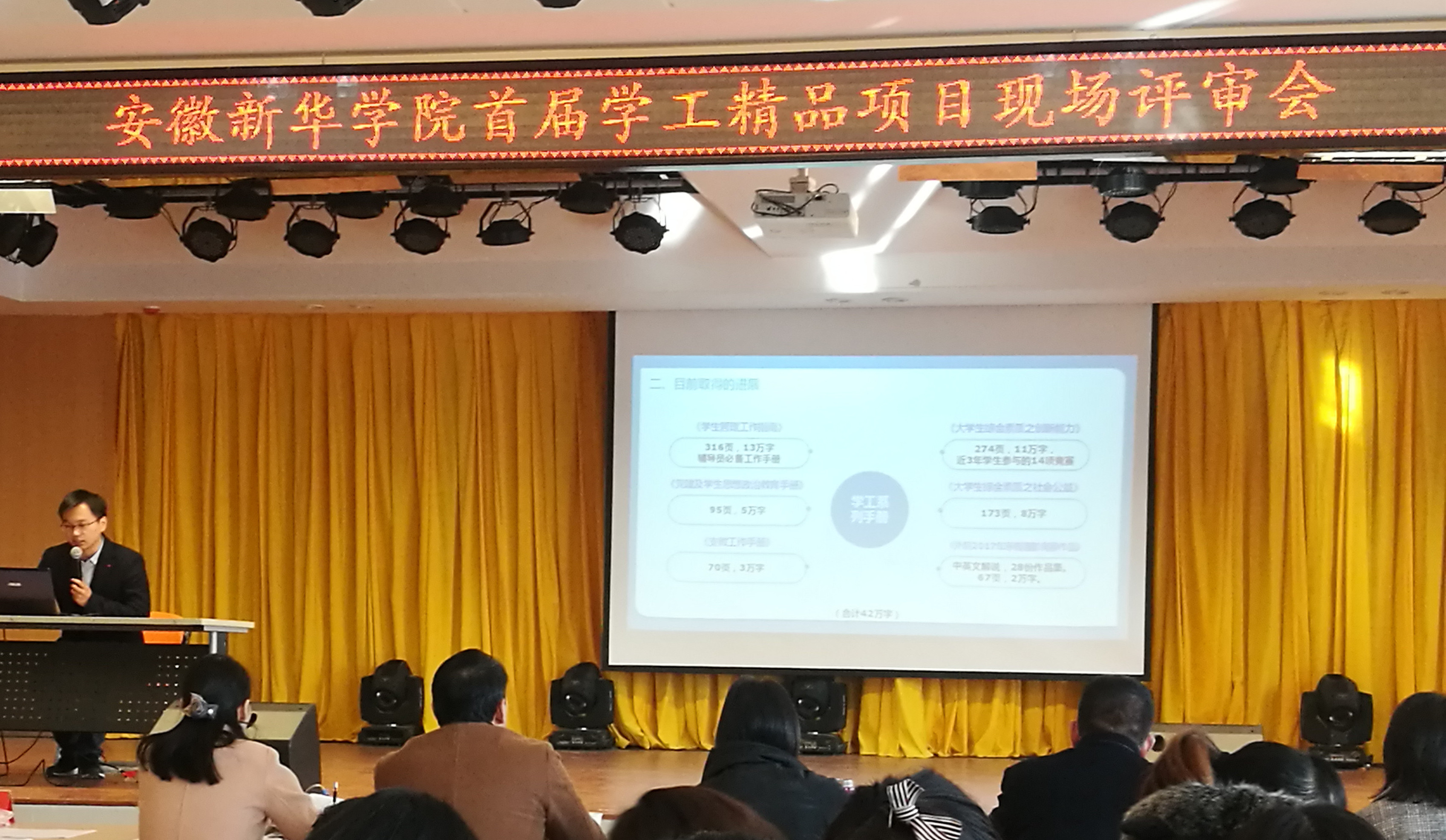 本网讯(通讯员:王强亚)为进一步加强我校学工队伍职业化、专业化建设,提高学工工作服务水平,12月20日,我校学生处在小礼堂组织开展首届学工精品项目现场评审会。副校长王丽、学生处处长汪俊东、各二级学院行政副院长、院长助理(团学工作)、全体辅导员参加会议。