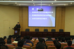 本网讯(通讯员:吴林 摄影:陆如海)1月8日下午,铜陵学院副校长冯德连教授应邀来我校作“以教研科研项目为抓手做好学科专业建设工作”主题学术报告。副校长马凤余教授,教务处、科研处、发展规划处全体人员,各二级学院教学管理人员及相关教师共150余人聆听了本次报告,报告会由马凤余主持。