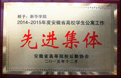 - 2016-01-07我校荣获“2014-2015年度安徽省高校学生公寓管理工作先进集体”荣誉称号