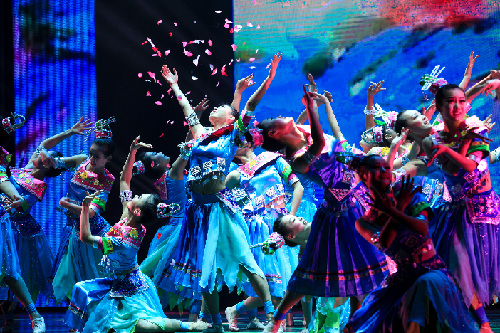 倪征认真观看了2013毕业典礼节目彩排,与同学们进行了亲切的交谈,他对大学生艺术团在校园文...