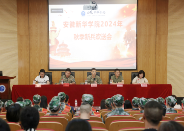 本网讯(通讯员:朱玉玲 摄影:融媒体工作室/潘雯、金鑫)9月3日下午,安徽新华学院2024年秋季预定新兵入伍欢送会在我校学术报告厅隆重举行。合肥市蜀山区人武部部长唐泊,军事科参谋石剑,安徽新华学院副校长王琦进,学生处处长芮萍,处长助理黄梦共同欢送我校32名学生入伍。各学院工作人员及预定新兵家长代表共同出席仪式。