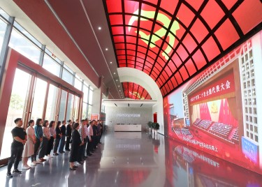 在讲解员的带领下,大家在序厅驻足观看了《永...