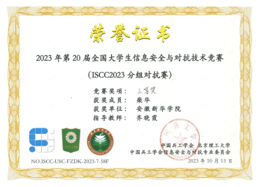- 2023-11-24喜报!我校学子在第20届全国大学生信息安全与对抗技术竞赛(ISCC2023)中喜获佳绩
