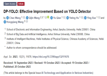 本网讯(通讯员:涂凌)近日,我校2021级安徽建筑大学联合培养研究生王超在国际知名期刊《Applied Sciences》【IF=2.838,JCR2区。入选《高质量科技期刊》与《世界期刊影响力指数(WJCI)报告(2020科技版)》,在“工程综合”学科的159个期刊中位列第2名】在线发表了题为“DP-YOLO: Effective Improvement Based on YOLO... 2023-11-08 我校组织开展安徽新华学院“校友来啦”第八期——博士校友沙龙活动