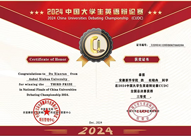 - 2024-12-17外国语学院学子在全国大学生英语辩论赛中荣获全国三等奖
