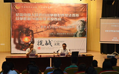 本网讯(通讯员:马兰)为纪念中国人民抗日战争暨世界反法西斯战争胜利70周年,9月2日下午,文传学院与校团委在文化与新闻传播学院演播厅,共同举办了一场《老舍文学作品中的抗战精神》专题报告会。报告会由文化与新闻传播学院顾问谢昭新教授主讲,学校两百多名师生参加了报告会。