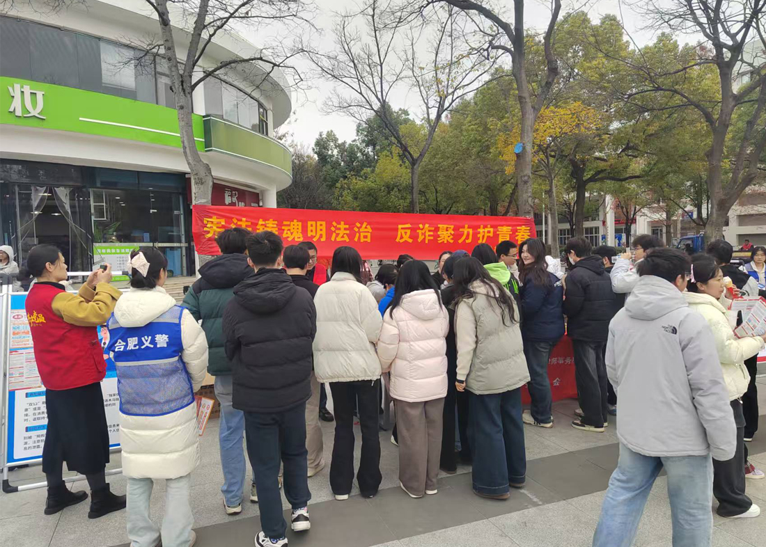 本网讯(通讯员:张大勇)“双12”购物季来临之际,为筑牢校园反诈防线,12月4日中午,我校联合兴园中心宣传部、香樟社居委、高新派出所及北京京师(合肥)律师事务所,在校内举办防电诈普法宣传活动。