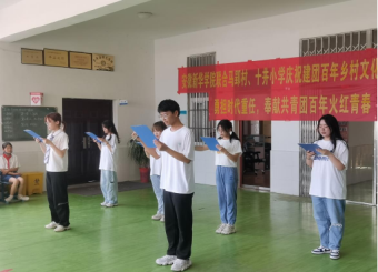 (通讯员:张皖斌 孟宇航)6月22日下午,安徽新华学院文化与传媒学院联合马郢村、十井小学开展以“勇担时代重任,奉献百年青春”为主题的“三下乡”文艺汇演并圆满结束。文化与传媒学院部分领导老师、“青新实践团队”全体成员、马郢村十井小学部分学生参与此次活动,本次活动由吴思豫同学主持。
