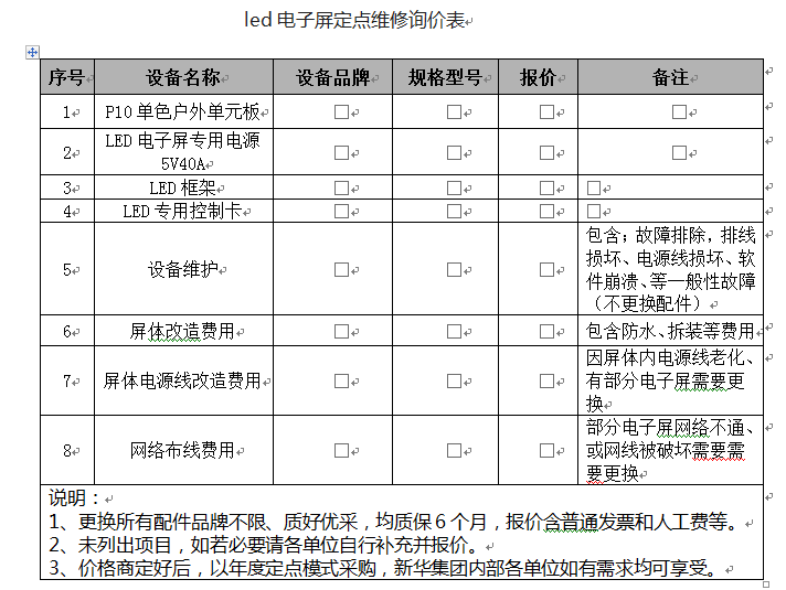 2、招标内容:LED屏定点维修项目