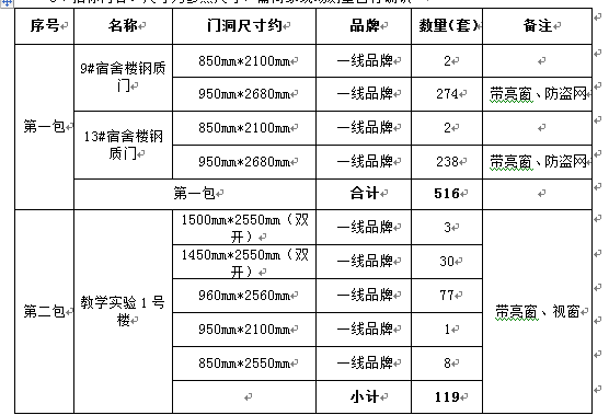2、项目名称:《宿舍楼、教学楼(实验)钢质门供货及安装项目》