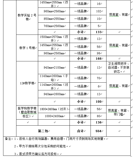 宿舍楼、教学楼(实验)钢质门供货及安装项目采购招标文件
