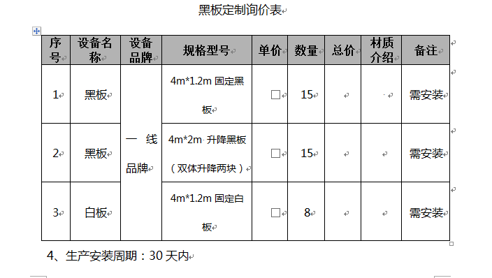 2、招标内容:学院黑板项目