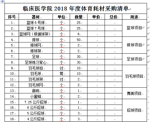 安徽医科大学临床医学院体育器材采购询价公告