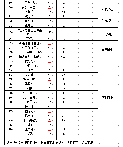 2、项目名称:《校园体育器材》询价项目