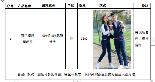 2、招标内容:2019年学生校服约2400套