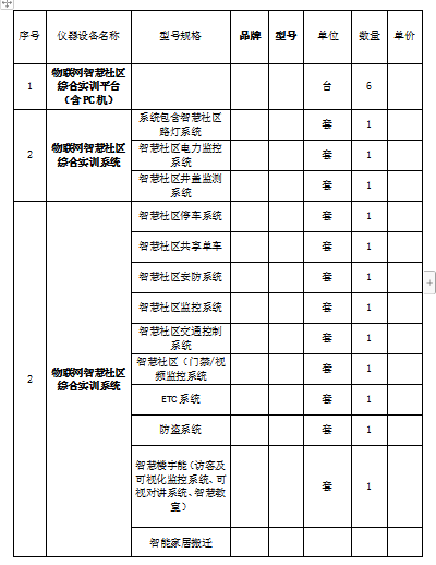 根据学院发展需要,现就我校电子通信工程学院《物联网(智慧社区)综合实训平台》项目进行公开询价,欢迎全国符合条件的供应商报名参与。