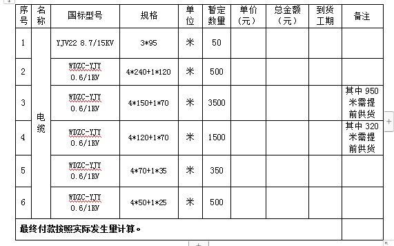 1、项目名称:《一期供电改造电缆采购》项目