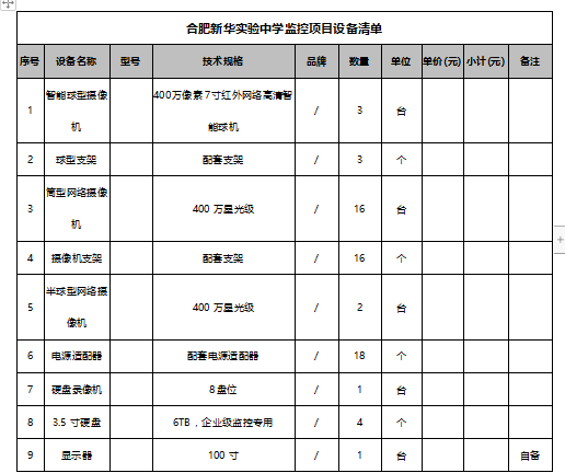 1、项目名称:《合肥新华实验中学监控建设项目》