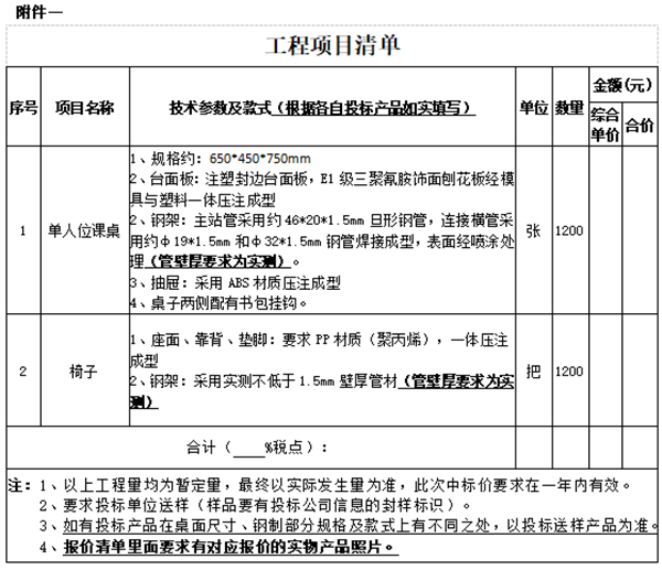 根据2020年建设计划,拟对安徽新华学院单人位课桌椅项目进行公开邀请招标,欢迎符合资质要求的优质供应商参与。