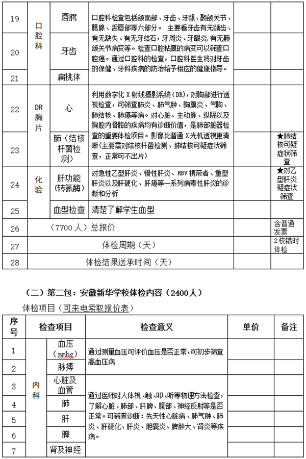 (第二包)安徽新华学校2020级新生体检项目(体检内容见安徽新华学校项目清单)