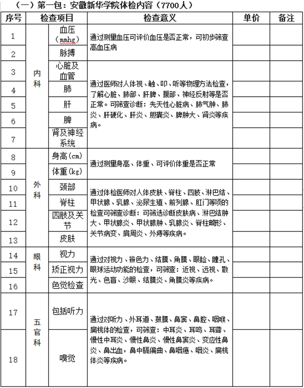 (第一包)安徽新华学院2020级新生体检项目(体检内容见安徽新华学院项目清单)