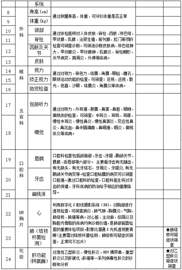 二、体检项目内容