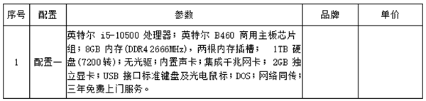 4.招标内容:电脑配置参数如下: